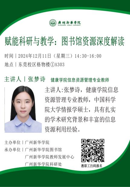 讲座主题:赋能科研与教学:图书馆资源深度解读